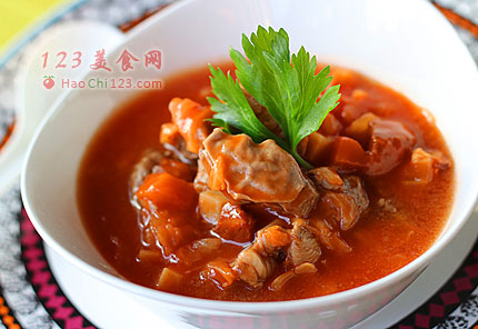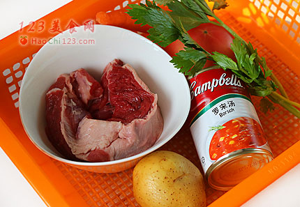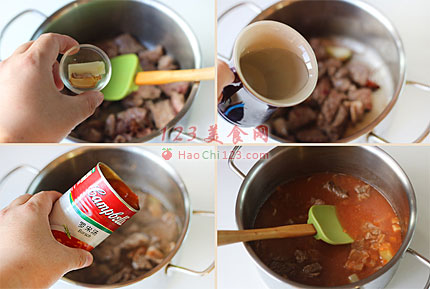 5、然后倒入金宝的罗宋汤拌匀,继续煮30分钟左右。