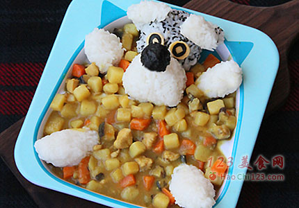 1、做个造型吃咖喱饭,算是哄小朋友的妙招了。