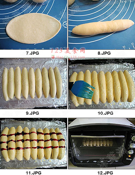 7、取一份先擀成椭圆形。