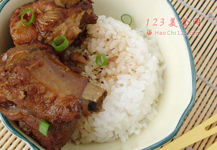 4、将炖好的排骨盛到米饭的旁边,再米饭上边浇上少许排骨汤就好了。[sushi.laoyanhuo.com]