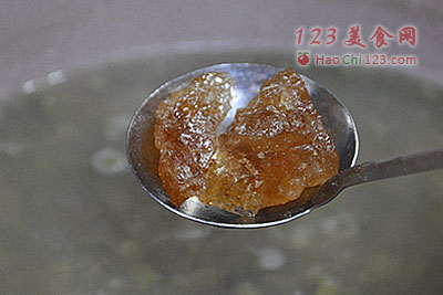 4、加入糖,调出自己喜欢的甜度。我习惯加一半冰糖、一半白糖来调味。