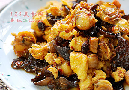 10、放入木耳同炒。