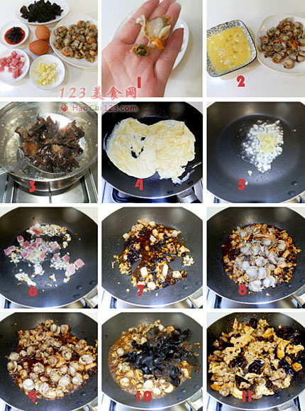 贴士:1、扇贝黑色的部分一定要摘净洗净,否则牙碜影响口感。