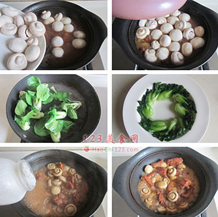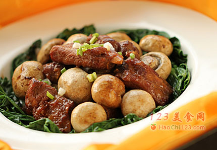 4、口蘑烧排骨,被人们誉为“素中之肉”的口蘑中含的大量植物纤维,能有效地去除排骨的油腻。红烧的过程中它们相互融合,不仅在口感上得到了提升,而且降低了胆固醇含量,让我们吃得无负担,补充营养的同时,又能防止发胖,是道备受老少青睐的佳肴美味。[sushi.laoyanhuo.com]