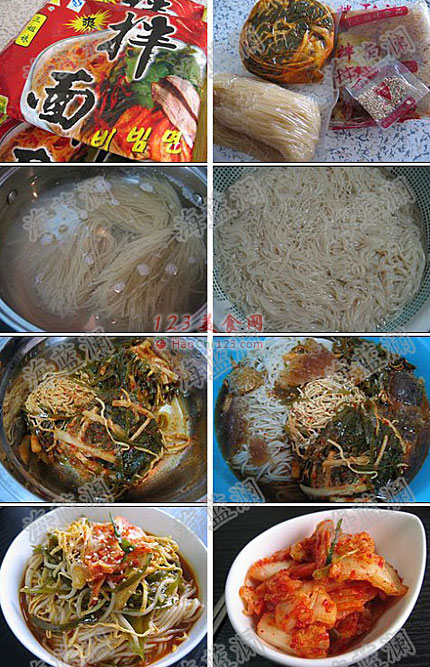 2、按说明,煮面,反复过凉水,直到水清澈。