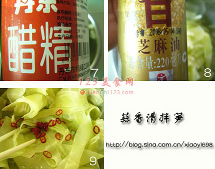 3、莴笋和蒜,小红椒加所有调料拌匀即可。