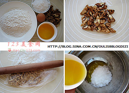 2、老式桃酥一定要用花生油和绵白糖,原因不解释,谁试谁知道啊~~绝对是小时候那种牛皮纸包的桃酥的味道。