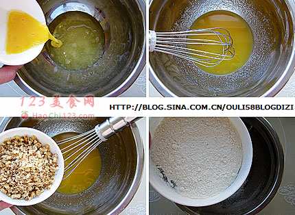 4、花生油和糖一定要用蛋抽搅打均匀,这样做出的桃酥味道才好。