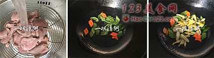 3、猪腰、鸡胗焯水后用冷水冲凉是为了保证口感松脆,如果用冰水效果会更好。