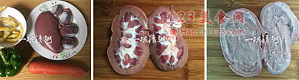 2、将猪腰对半破开。