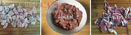 6、鸡胗洗干净后切成薄片。