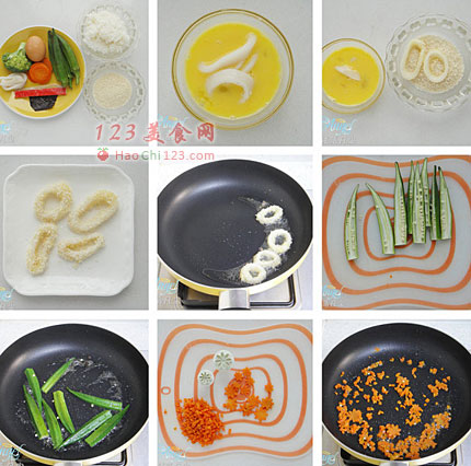 6、秋葵对半切开。