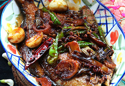 4、炒锅洗净,入少油,将调料炸香后,放入鱼儿,加酱油、少盐、一点儿白酒、喷几滴香醋,待鱼儿上色后,加热水过鱼身子,大火煮滚转小火加白糖焖十五分钟左右,倒入青椒条再大火收汁,起锅。[sushi.laoyanhuo.com]