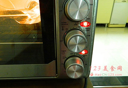 6、看一下温度和时间,因为烤箱不同,大家做的时候一定得知道自己烤箱到底温度是多少,比如长帝烤箱温度会偏高一些,食品温度计是必备滴。