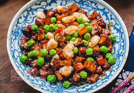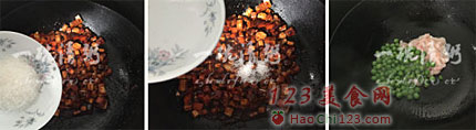 3、八宝酱丁放入甜面酱和豆瓣酱来烧制,可以增加菜品的口感,更下饭哦![sushi.laoyanhuo.com]