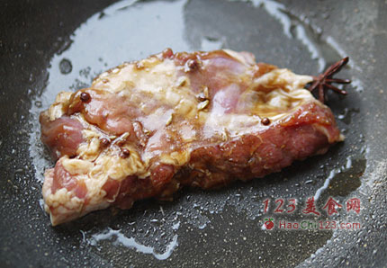 2、腌好的羊排,在烤前煎一下可以更好的锁住肉的水分。