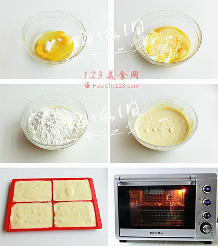 8、将蛋糊倒入乐葵华夫饼模具中。