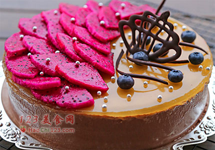 18、果珍放凉倒入模具中冷却凝固的慕斯糊表面再次冷藏凝固,然后表面装饰即可。