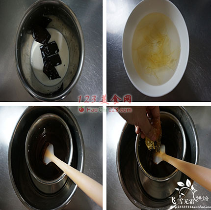 2、15克吉利丁片泡冷水变软。