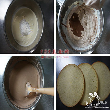 12、再放一层蛋糕片,然后加入另三分之一慕斯糊。