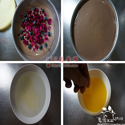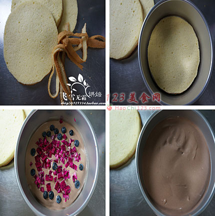 11、放入三分之一慕斯糊加入适量水果。