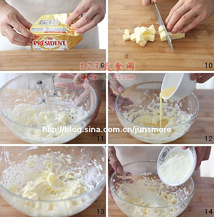 11、软化的黄油,加入糖粉和盐,用打蛋器打发。