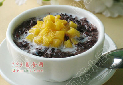 3、芒果:含有丰富的维他命A、C及钙质,有益胃止呕、生津解渴及止晕眩等功效。紫米:富含铁质,具有强的补血功效,健脾暖胃,滋阴补肾。此粥很适合夏秋两季食用。[sushi.laoyanhuo.com]