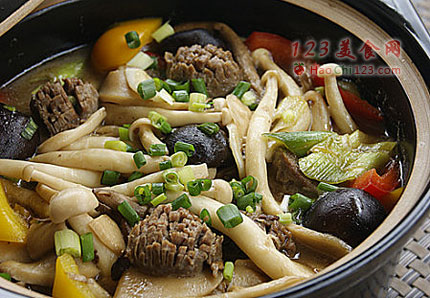 5、这款杂菇煲由海鲜菇、香菇、茶树菇、杏鲍菇四种菇组成,另加入脆爽的牛肉丸和补充维生素的黄红椒,健脾养胃之余,还给乍寒乍暖的秋天增添一份秋意。[sushi.laoyanhuo.com]