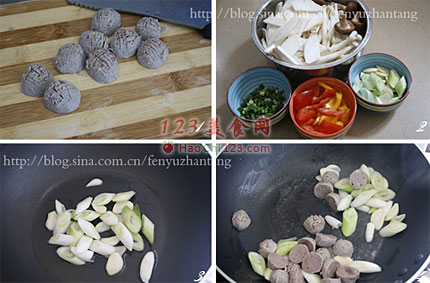 4、然后倒入牛肉丸爆炒。