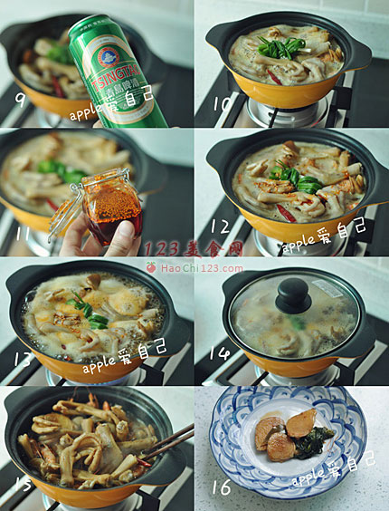 9、10、倒入啤酒。