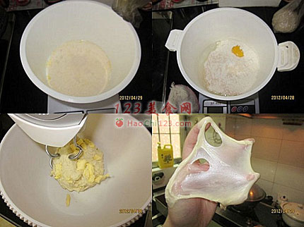 2、将面团放入涂了一点油的保鲜袋里面,扎好袋口,放温暖处发至2.5倍大。