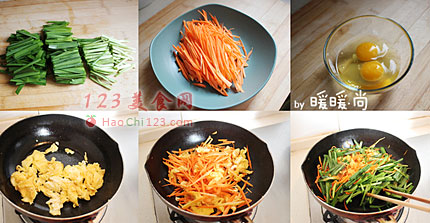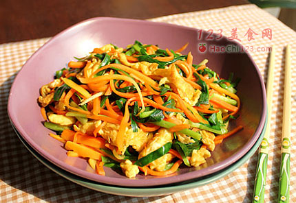 2、胡萝卜去皮切细丝。