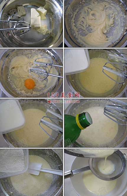 2、混合好的面粉看上去应该是像粗玉米粉的样子,一粒粒的。