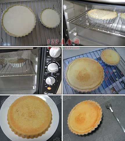 1、将倒入乳酪馅至9成满的派,放入预热好的烤箱,180度烤35分钟左右,直到乳酪馅凝固即可(由于最近发现我的烤箱比大家的温度略高,所以实际降低到170-175烘烤)。