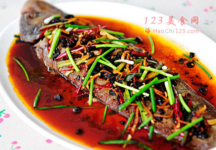 9、把蒸好准滚的浇汁浇淋到鱼身上,撒上小葱段,趁热食用。