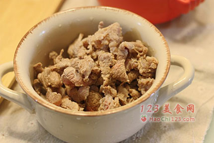 2、如果没有压力锅可以往牛腩里多加水,用中小火熬煮至牛腩软烂适中。
