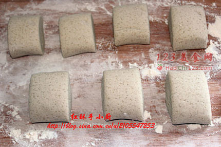 3、揉成长条的面团切成一个个的面剂,二次饧发,天气太冷,我把他们都拿到烤箱里去二次饧发了。可能是烤箱太干,饧发好了,面剂一个个的都长了皱纹了。