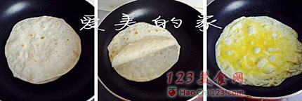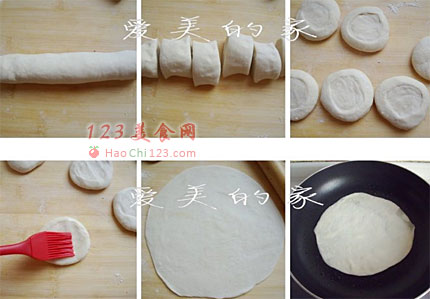 5、煎至表面起泡时翻面,因面饼中刷了一层油,此时可轻易地分成二张饼。