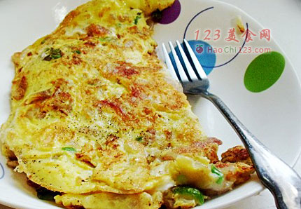 2、翻面时因为蛋饼比较大,需小心慢慢地操作,也可以借助大一点的盘子辅助,即先完整地倒在盘里,再将盘子里的蛋饼扣在锅上。[sushi.laoyanhuo.com]
