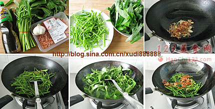 贴士:通菜,也叫空心菜或蕹菜,是常见的一种绿叶菜,有白梗和绿梗两种,白梗的粗壮一点,绿梗的纤细一点。常见的做法有蒜蓉炒通菜,腐乳炒通菜,虾酱炒通菜等等,最近和朋友在某家饭店吃到一道樱花虾炒通菜,觉得不错,回家就复制了一把,也让家人尝尝饭店里不同做法的通菜味道。[sushi.laoyanhuo.com]