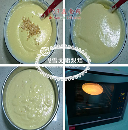 7、将蛋糕面糊倒入模具中。