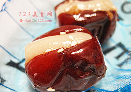 10、出锅后可直接食用,也可调和蜂蜜桂花水和白芝麻浇在糯米枣上再食用。