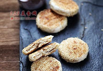 16、出炉的烧饼,趁热吃哦。吃不完的烧饼如果凉了,重新放入预热好的电饼铛加热2分钟左右就和刚出炉一样美味了。