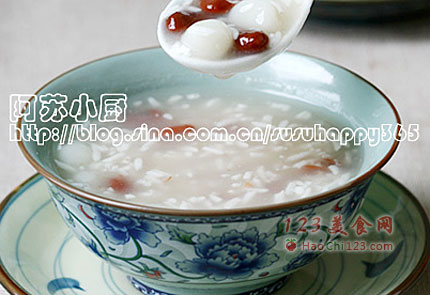 3、当然酒酿圆子还有一种经典做法,就是:不用加蜜红豆,而是打一个鸡蛋进去,打成蛋花,出锅后加入糖桂花,也好好吃哦。[sushi.laoyanhuo.com]