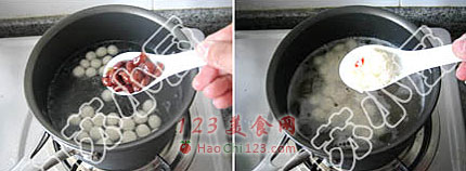 2、放入小圆子,煮到小圆子都浮出在水面上。