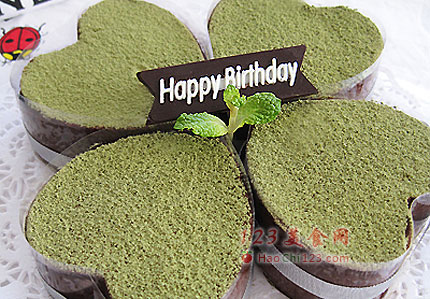 9、再筛一层抹茶粉即可。依次按上述方法做完四个心型抹茶巧克力慕司。