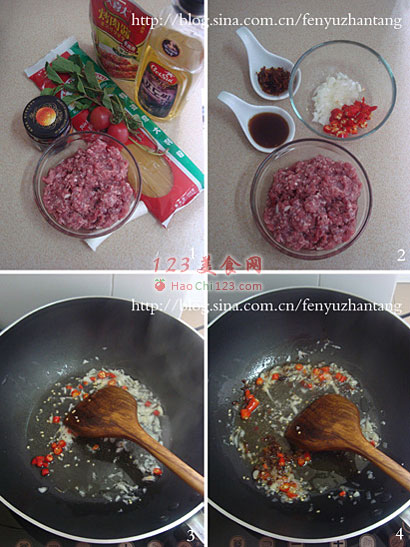 2、牛肉糜洗净沥干水份,大葱切碎、指天椒切圈,薄荷切碎(忘拍),XO酱、烤肉酱备好。