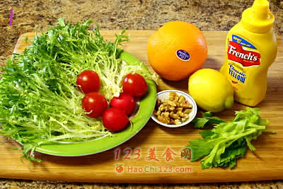4、制作任何一种沙拉菜,蔬果洗净以后一定要充分沥干水份,否则会影响成品口感。