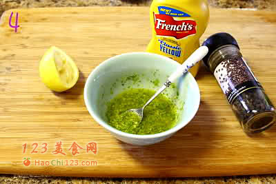 6、调制沙拉酱汁,用柠檬代替各式果醋,味道会更美味清香,酱汁的味道可以更据自家口味酌量添减,以适应自己的口味。