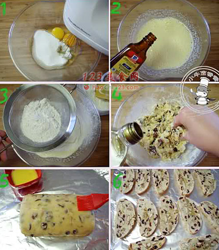 6、取出晾大约20分钟左右,用带齿的利刀切成大约小于一指宽的厚片,最后将切好的厚片平放在烤盘里,烤箱温度降至163摄氏度(325华氏度),放回烤箱烤20分钟左右,至表面金黄色取出晾凉后食用。
